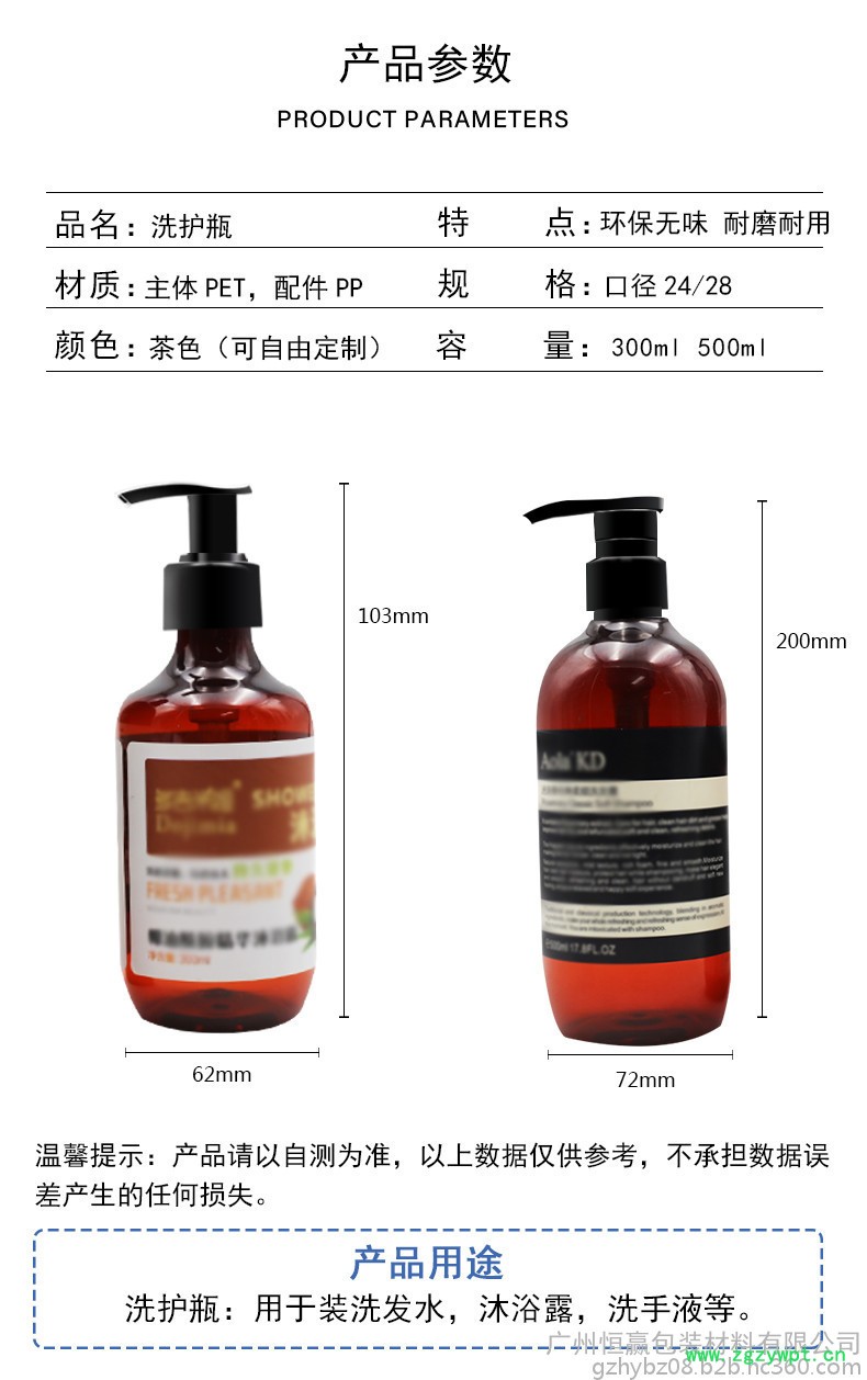 生姜洗发水瓶300ml 500ml 中药洗护瓶 PET棕色塑料瓶 琥珀色瓶子