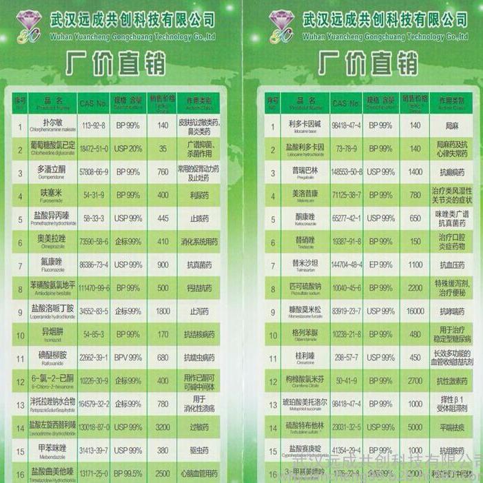 以上是-原料的生产、价格、应用和销售情况。如果您对--产品的用途/作用/含量/规格/标准/性状/性质/CAS编号/副作用/药理学/药物动力学/适应症/禁忌症/药物相互作用市场行情/市场前景、有什么疑问,欢迎联系我们,合作是一种机缘,我们将以质量和诚信让您满意!