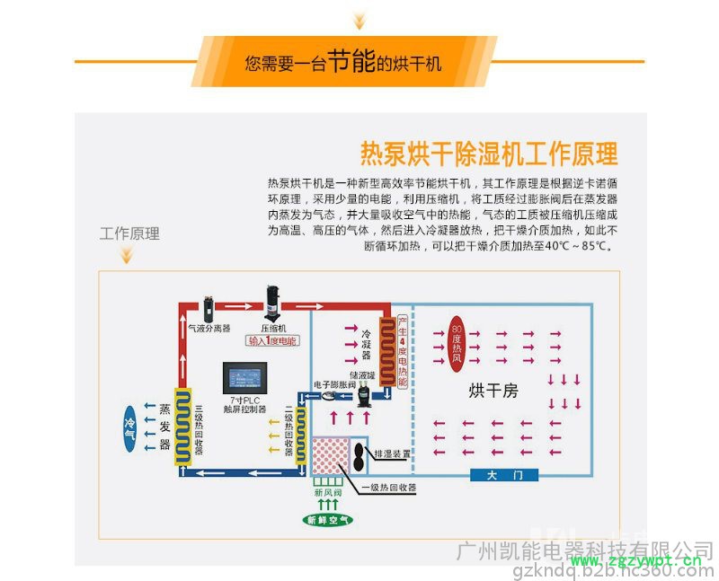 水蛭干燥早几年一般采用太阳晾晒的方式,由于近几年人工繁殖的技术不断成熟,产量较大的时候采用太阳晾晒的水蛭色泽较差、质量很难把控已经很难满足生产的需求。使用水蛭烘干机干燥的水蛭色泽好,药效成分流失少,烘干过程无污染、全程智能控制无需专员看守。金凯水蛭热泵烘干机是利用逆卡诺原理,使用少量的电促使压缩机做功、冷媒通过蒸发器大量吸收空气中的低位热能,通过压缩机转换成高温高压气体,搬运到库房冷疑器通过循环风机将热能释放到烘干房,不断循环加热配合设备自带的除湿装置从而达到节能环保干燥的目的。使用金凯空气能烘干机,一度电可以产生4度电以上热能,是目前**节能环保的烘干设备。
