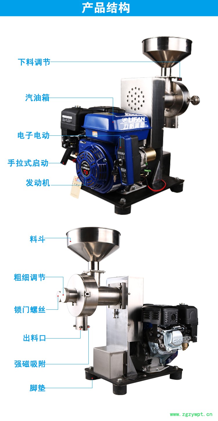 手拉绳汽油磨粉机 电子打火研磨机 茯苓面粉机
