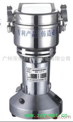 广州旭朗所研制的中药粉碎机小巧而美观,可在桌面上使用。噪音低,不用辅助设备,尤其适合药店为顾客当场加工。超高速电机设计,药材粉碎能达到100目以上,对中西药物、珍珠、化工原料、食品原料、矿物、土壤、粮食、、实验原料即能快速粉碎:阿胶、乳香、黄芪、三七、海马、菟丝子、灵芝、田七、甘草、珍珠、大米、辣椒、胡椒、莲子、黄豆、小麦、玉米、高粱、等等均能很好的粉碎。粉碎500g**粉的中药全程**也不过五分钟(达50-300目)。安全卫生、刀片全由不锈钢打造,符合中药要求。、药材损耗极小,机器清洗容易。粉不同的物料绝不会串色串味。操作简单,人员不用专门培训,会按开关行。耐用、耗材少,经济合算。耗材只有刀片一种,用特殊钢材,与**剃须刀刀片同质。 他是中药店不可缺少的捣药工具,替代传统捣药工具。是目前诊所、门诊部、小型医院、专科医院、医院药房药店,研究所、实验室、试制室、大中专院校、科研单位、商场、家庭粉碎的理想设备。现有100克、200克、300克手提式高速中药粉碎机;200克、300克、400克、500克摇摆式(可倾式)高速中药粉碎机,连续生产型粉碎机。