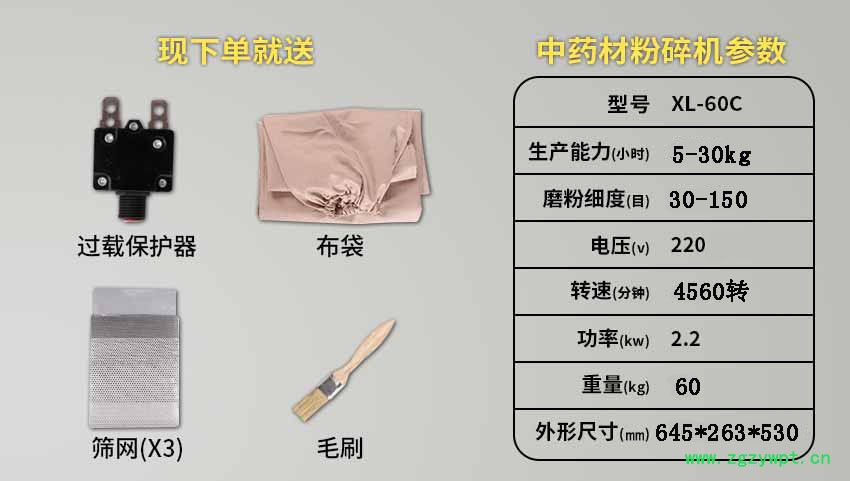 玛卡、干燥的草本植物等(油性、湿性、粘性物料除外)。注:要直接投入的块料尺寸不能大于40毫米。