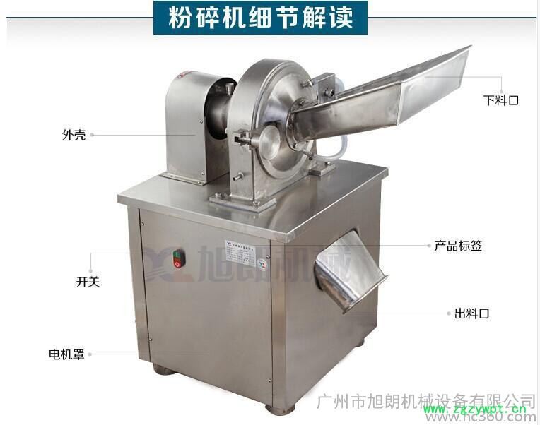 三.机器特点: 1.结构简单,粉碎腔装、拆简便,容易清洗。 2.运转平稳,噪音小,振动小。 3.操作简单。更换筛网可以控制粒度的大小。 四.注意事项: 1.本机在外接电源应根据机器功率加装合适的断路器,目的是在机器负荷过大,电流过大时自动切断电源,以保护电机! 2. 本机在工作时确保有专人看管。 3.被粉碎的物料颗粒不宜过大,如遇闷机(即机器因负荷过大导致转速明显变慢或者被动地停止运转),应该马上断掉电源。 3.如果被粉碎的颗粒过大,应该要经过万能破碎机的破碎后,再用本机粉碎。