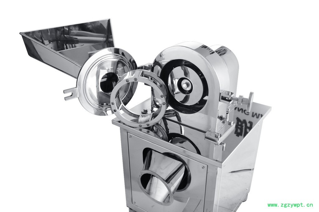 3、不同的型号,产量是不同的。机器越小,产量越低。再大的型号,也有产量的限制,注意控制投料量,原则上机器每分钟出粉多少,投料量也不得高于出粉量。投得多,出粉少,机器因为粉碎腔的物料太多造成电机负荷过大,如果出现电机转速减慢甚至不转的情况,应该马上关掉机器开关并且断掉总电源,再打开机盖,清理掉粉碎腔内的物料后,锁紧门盖后才能再次开机。