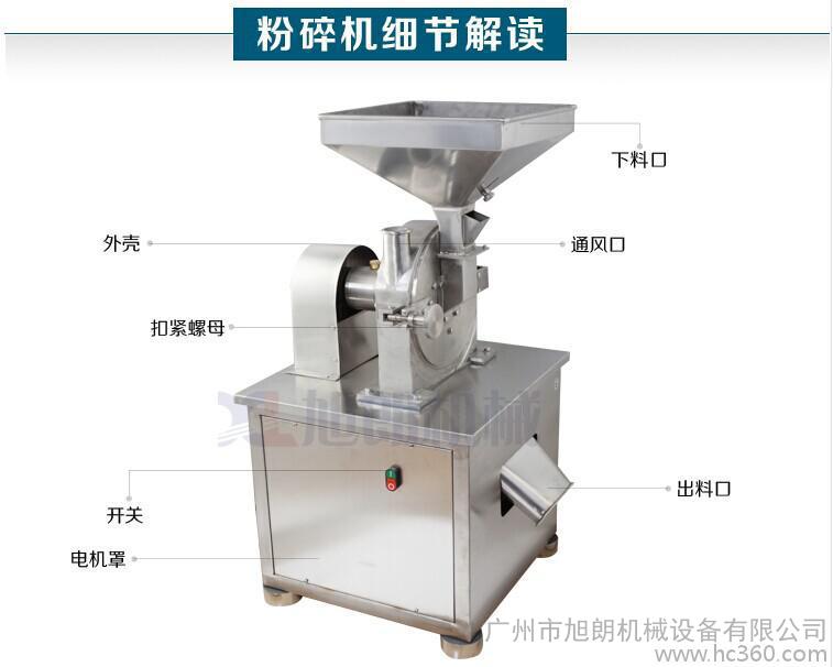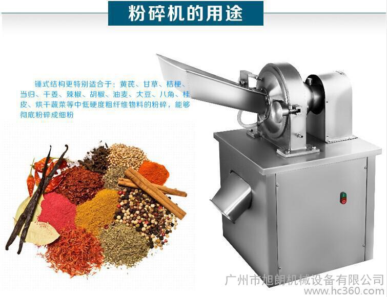我司所研制生产的旭朗牌粉碎机是采用304号不锈钢制作,配套国标电机,主要用于化工材料、中药材含树根、树枝以及块状类物料、各种含油量不高的粮食、五谷杂粮以及其他一些硬性、脆性的物料。