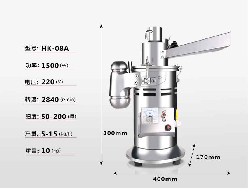 HK-08A落地流水式粉碎机又名高性能粉碎机、体积小、造型美观、移动方便、操作简单,特殊构架运转绝无振动、、安全性高、性能稳定、卫生洁净、损耗极低、效率高、细度准确可调;与药物接触部分用不锈钢制作,符合卫生标准。