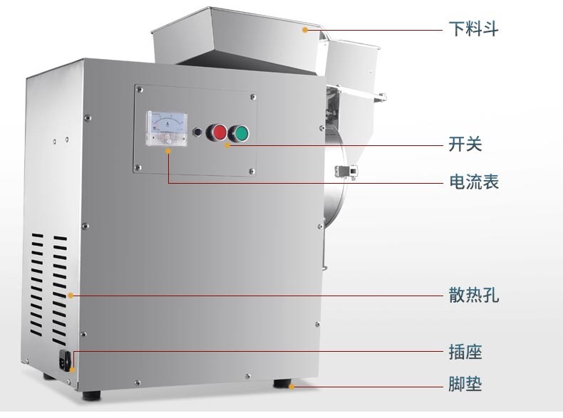 本粉碎机能快速粉碎各种软硬药材和其他材质的物料,主要包括灵芝、西洋参、铁皮枫斗、三七、珍珠、茎草类、矿石类、五谷杂粮、玛卡、干燥的草本植物等(油性、湿性、粘性物料除外)。注:要直接投入的块料尺寸不能大于40毫米。