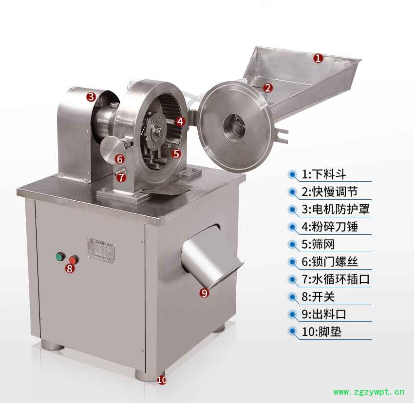 水冷全能粉碎机(活动锤式粉碎机)使用说明: