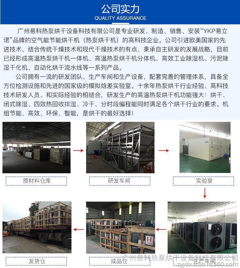 公司拥有**的研发团队、生产车间和生产设备,配套完善的管理体系,具备全方位检测设施和先进的**级的模拟焓差实验室。十余年热泵烘干行业经验、高科技技术研发人员、和实际经验的相结合,研发生产的高温热泵烘干机功能强大:烘干、闭式除湿、四效热回收排湿、冷干、分时段编程能同时满足各个烘干行业的要求。机组节能、高效、环保、智能,是烘干的**好选择!