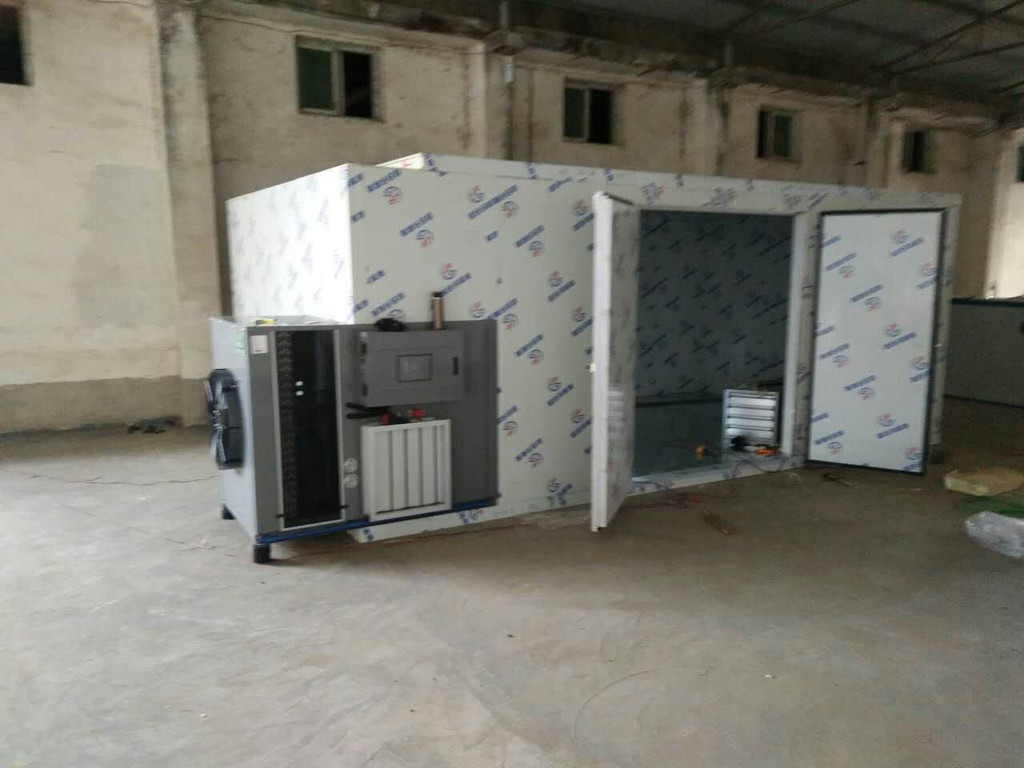 高温热泵烘干机是利用逆卡诺原理,吸收空气中免费的热量并将其转移到烘干库房内,实现烘干房的温度提高,配合相应的除湿排湿设备实现物料的干燥。热泵干燥机由压缩机——换热器(内机)——节流器——吸热器(外机)——压缩机等装置构成了一个制冷剂循环系统。冷媒在压缩机的作用下在系统内循环流动,它在压缩机内完成气态的升压升温过程(温度高达100℃),它进入内机释放出高温热量加热烘干房内空气,同时自己被冷却并转化为流液态,当它运行到外机后,液态迅速蒸发吸热再次转化为气态,同时温度下降至零下20℃——30℃,这时吸热器周边的空气**会源源不断地将热量传递给冷媒。冷媒不断地循环**实现将空气中的热量搬运到烘干房内加热房内空气温度达到干燥物料的目的。