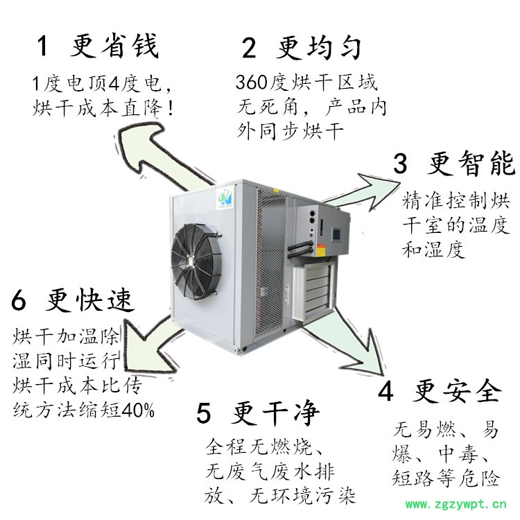 1、节能高效:空气源热泵烘干机的运行费用只有燃油干燥机的40%,燃煤干燥机的60%和电热加热设备的30%,大大节省了烘干的成本为企业创造了直接的利润。