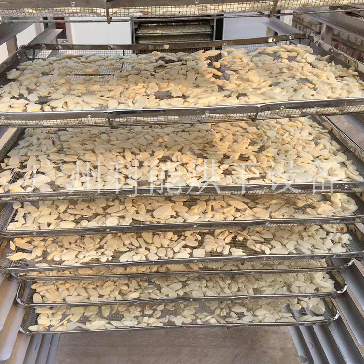 1、将山药去皮后切成厚薄均匀,大小一致的山药片,过水处理,沥干水分后**铺放到不锈钢的物料车架上,注意不要起堆,片与片之间要留有一定的间隙。