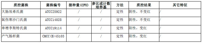按标签用法制备培养基,接种以下质控菌株,放置/℃/培养/小时。