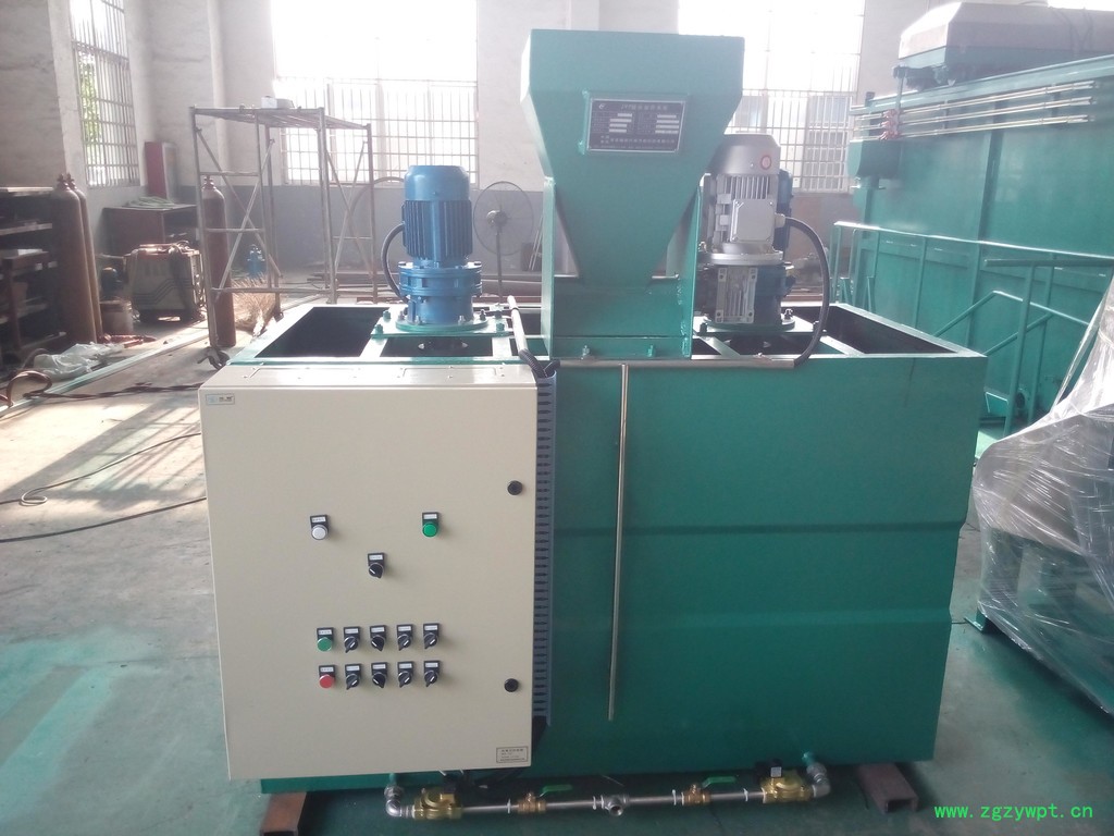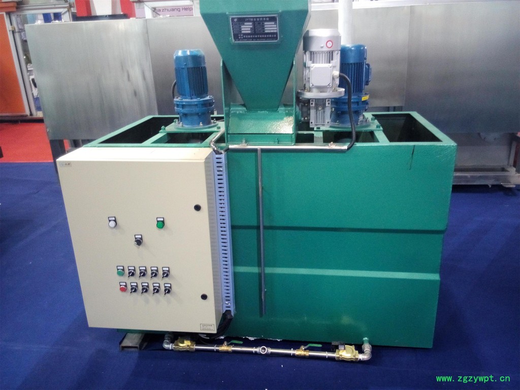 本设备是基于高份子类药剂难以溶解、易结块、投加要求高的特性而开发的系列产品。该装置是一种将粉状药剂配制成一定浓度的药液并将其准确投加至加药点的先进的加药系统,主要用于给水系统、气浮系统、污泥脱水系统中高分子聚合物溶液的制备与投加。