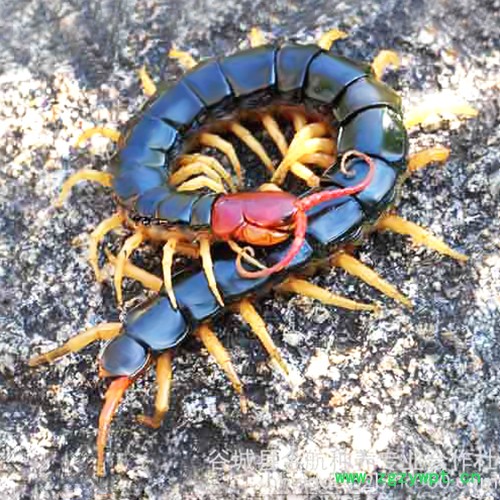 脚虫、少棘蜈蚣等,常见的蜈蚣有红头、青头、黑头三种。红头的背部呈红黑色,腹部现淡红色,足为淡