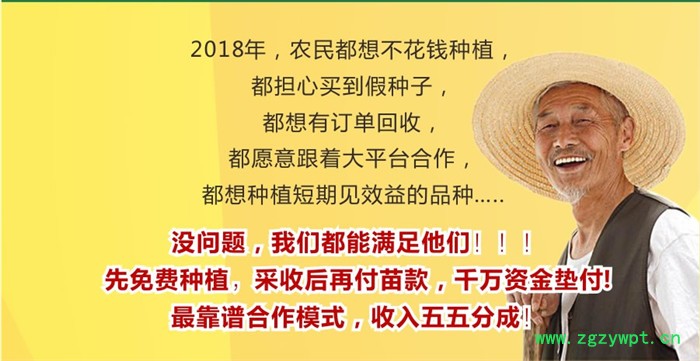 成为我们的合伙人,联合种植户,利用各地闲散、闲置和创收低的土地,加入到农商网“惠农计划”全国各地免费种植、收益后再支付苗款。