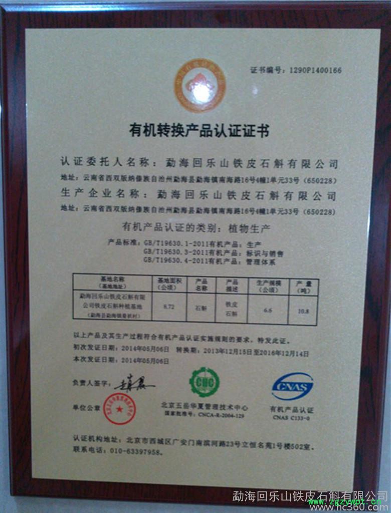 勐海回乐山铁皮石斛有限公司位于云南省西双版纳境内,版纳的天气湿度与温度非常适合铁皮石斛的生长,我司由于选有利于石斛生长的高山坡地,从而减少的虫蚁伤害,减少农药的喷洒,于2014年已正正式颁发了有机认证质量证书。