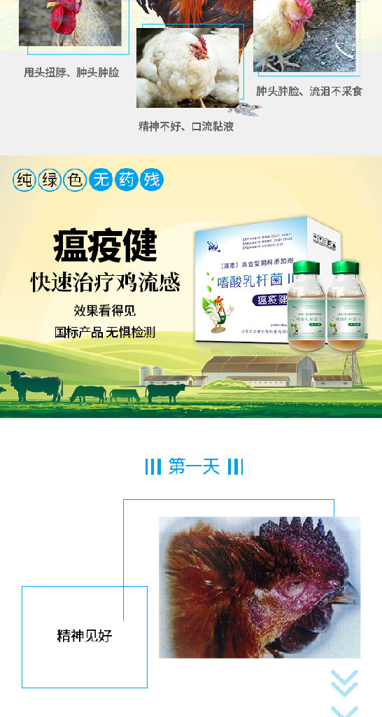 饮水:预防10000羽成禽/瓶,治疗5000羽成禽/瓶,集中3-4小时饮。