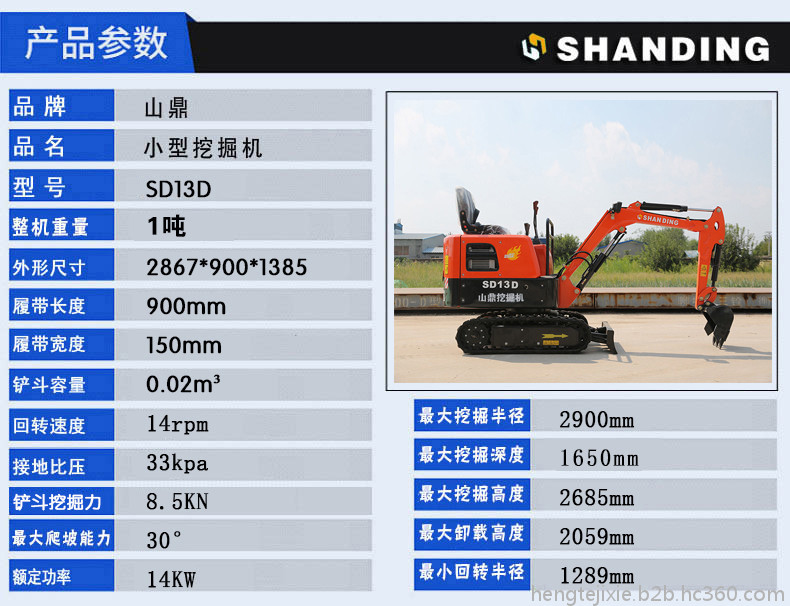 山鼎SD13D履带式小型挖掘机是13S的加强版,是在13S的基础上升级的: