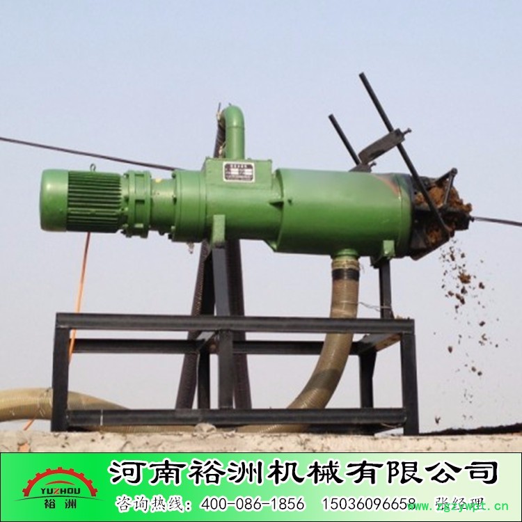 由配套的无堵塞液下泵将鸡粪水提升送至鸡粪脱水机内,再由绞龙将鸡粪水逐渐推向机器的前方,同时不断提高机器前缘的压力,迫使物料中的水分在边压带滤的作用下挤出网筛,流出排水管。鸡粪脱水机的工作是连续进行的,其鸡粪水不断的提升至鸡粪脱水机体内,前缘的压力不断增大,当大到一定程度时**将出料口顶开并挤出挤压口,达到挤压出料的目的。为了掌握出料的速度与含水量, 可以调节主机下方的配重块,以达到满意适当的出料状态。