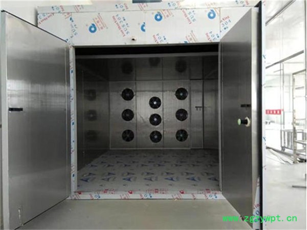 3.供热室,安装电加热设备、产生热空气的空间,在适当位置安装送风机,风机强制风循环,使烘干机内上下温差小,特别的可调式分风多孔板,保证温度均匀.
