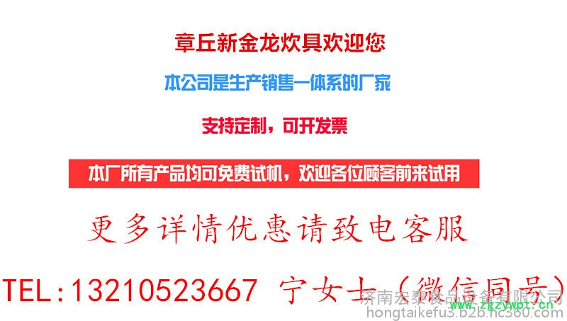 章丘新金龙炊具厂(济南宏泰食品机械有限公司)是一家专门从事食品机械、炊事机械研发和生产的私营企业。本厂已有十多年的发展历史。我厂生产的“新金龙”炊事机械已遍布全国,深受广大用户的青睐与关注。