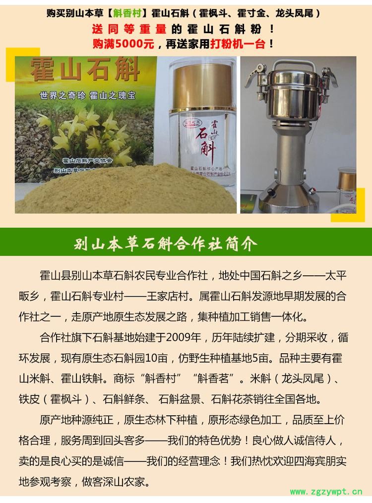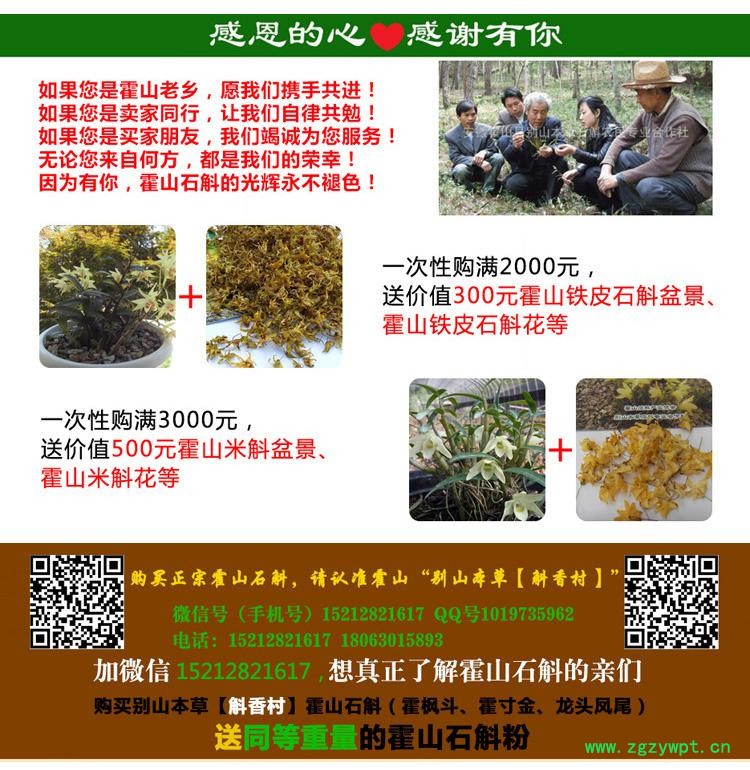 二、更多惊喜更多优惠:凡购买本店石斛,皆有3种以上霍山石斛系列赠品,或其它大别山特产赠送。多买多送!农民专业合作社,种植、加工、销售一体化,原产地直销,价格更合理。同质比价,同价比质!