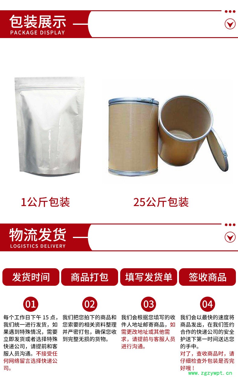 【包装方式】大货25kg/纸板桶,小样为1kg/铝箔袋,一般按公司内部标签统一模板。