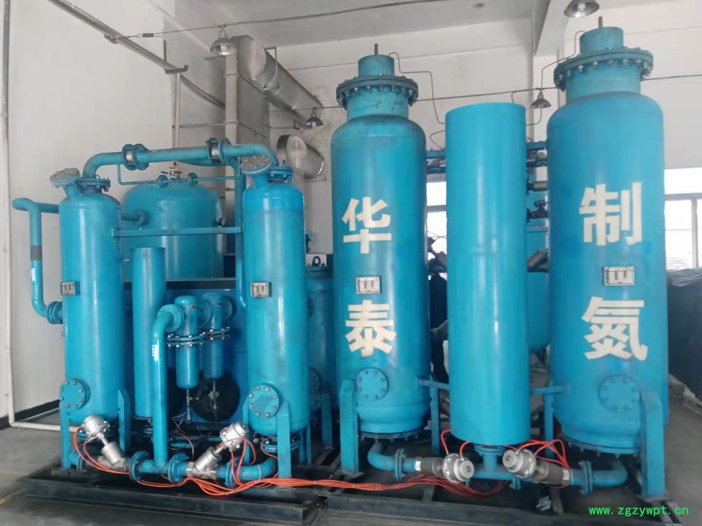变压吸附制氮设备是采用碳分子筛作为吸附剂,在一定的压力下,利用空气中的氧、氮在碳分子筛孔隙中扩散速率不同而达到分离空气的目的。即碳分子筛对氧的扩散吸附远大于氮,通过可编程序控制器来控制多个阀门的导通、关闭,达到两只吸附塔的交替循环工作:加压吸附,减压脱附的过程,从而完成氧、氮的分离,得到用户所需纯度的氮气。