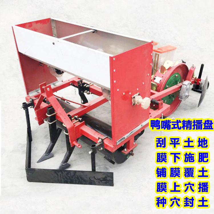 本产品主要是膜上播种玉米、谷子、黍子、谷物类。适合于干旱半干旱地区使用。能够一次性完成前置刮土、整平、开沟、深施颗粒肥、铺膜、压膜、穴播、覆土等工序。本机采用先铺膜后播种工艺,无需人工破膜,避免了先播种后铺膜造成的繁重体力劳动。