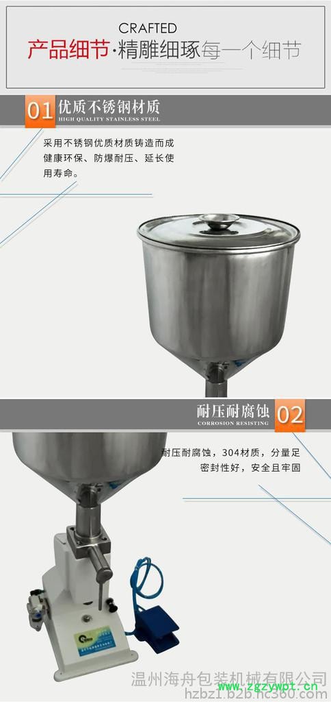 计量机构采用柱塞方式,计量灌注系统调节灌注量以及灌注速度方便(灌注量通过调节气缸上的行程阀来实现。灌注速度可通过调节气缸上的调速阀来实现。),灌量精确,计量误差小于2%,灌嘴可根据灌注的物料不同,进行更换;本机分为料斗式和自吸式两种。