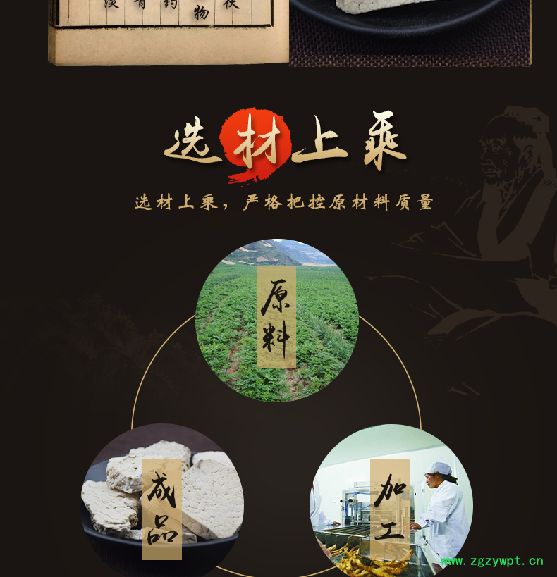 华珍品 本着"地道药材、源于自然、造福人民"的宗旨,严格执行中药材管理规范,以确保中药材质量。