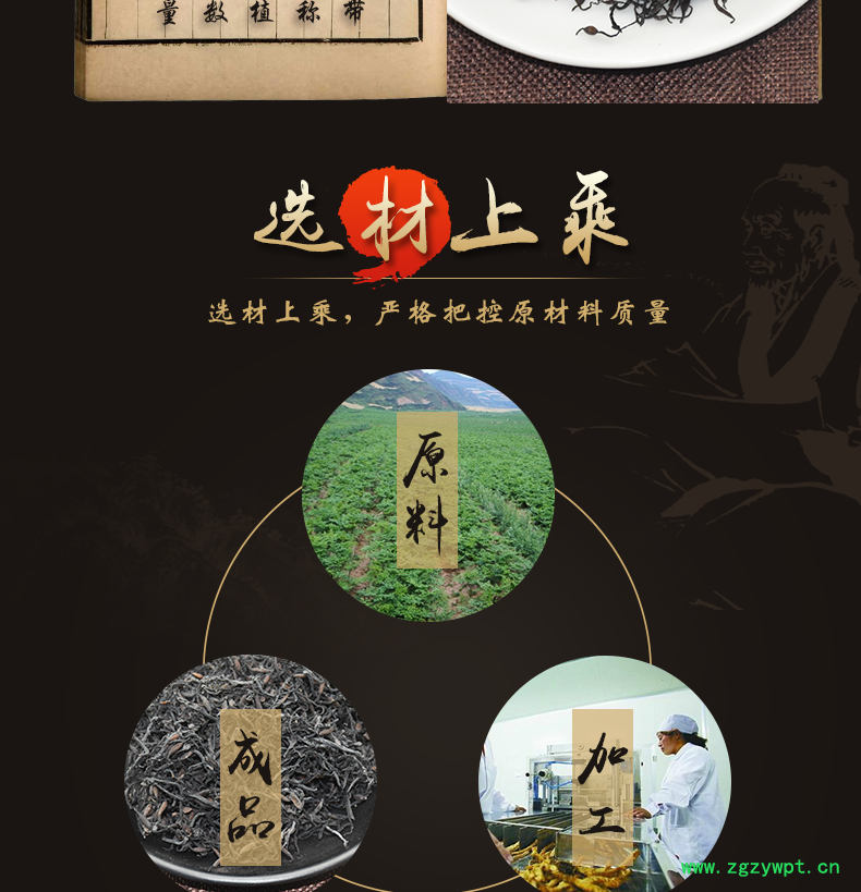 华珍品 本着"地道药材、源于自然、造福人民"的宗旨,严格执行中药材管理规范,以确保中药材质量。