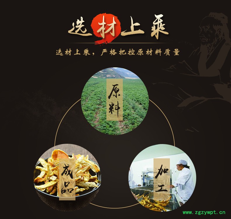 华珍品 本着"地道药材、源于自然、造福人民"的宗旨,严格执行中药材管理规范,以确保中药材质量。