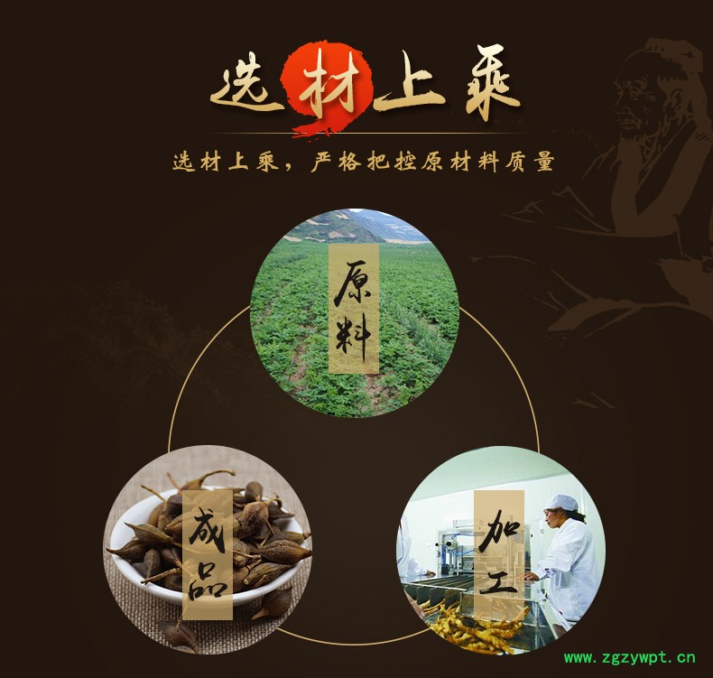 华珍品 本着"地道药材、源于自然、造福人民"的宗旨,严格执行中药材管理规范,以确保中药材质量。