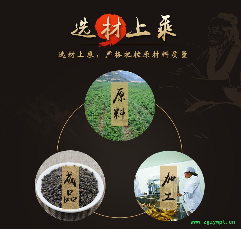 华珍品 本着"地道药材、源于自然、造福人民"的宗旨,严格执行中药材管理规范,以确保中药材质量。