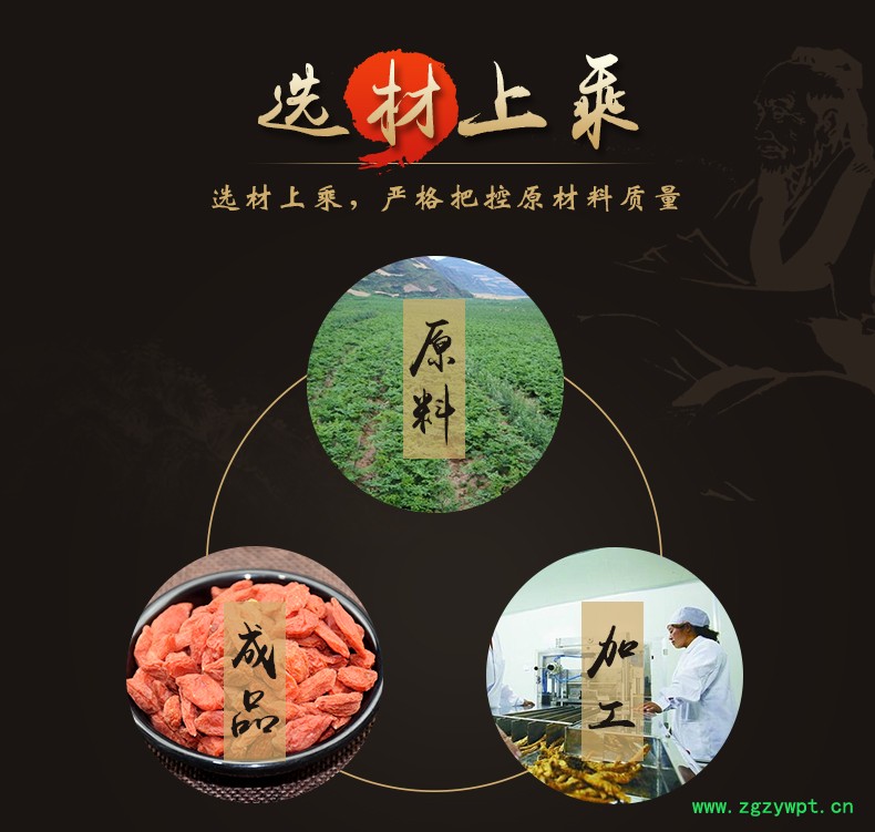 华珍品 本着"地道药材、源于自然、造福人民"的宗旨,严格执行中药材管理规范,以确保中药材质量。