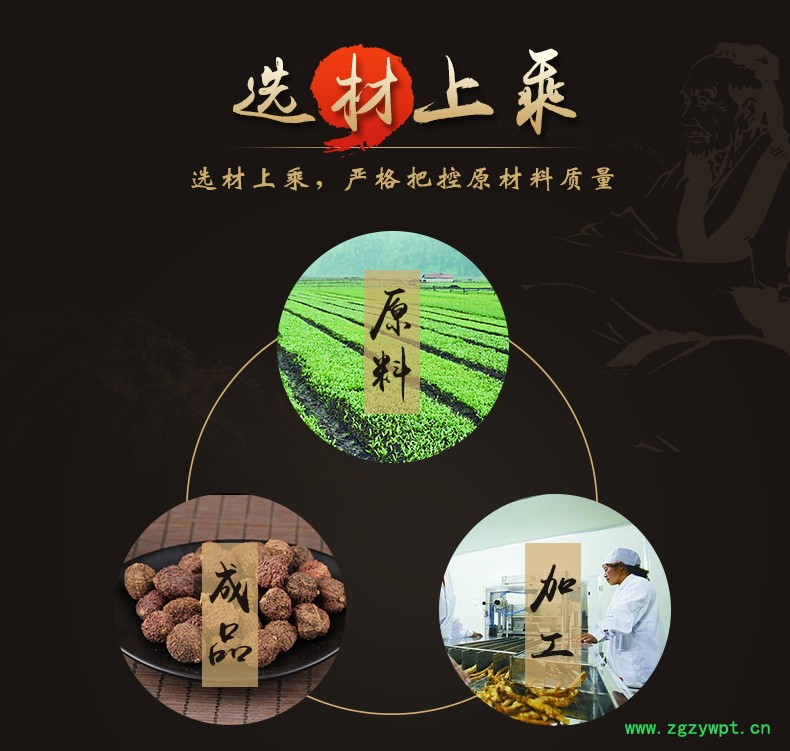 华珍品 本着"地道药材、源于自然、造福人民"的宗旨,严格执行中药材管理规范,以确保中药材质量。