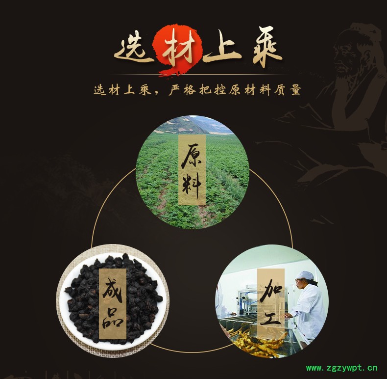 华珍品 本着"地道药材、源于自然、造福人民"的宗旨,严格执行中药材管理规范,以确保中药材质量。
