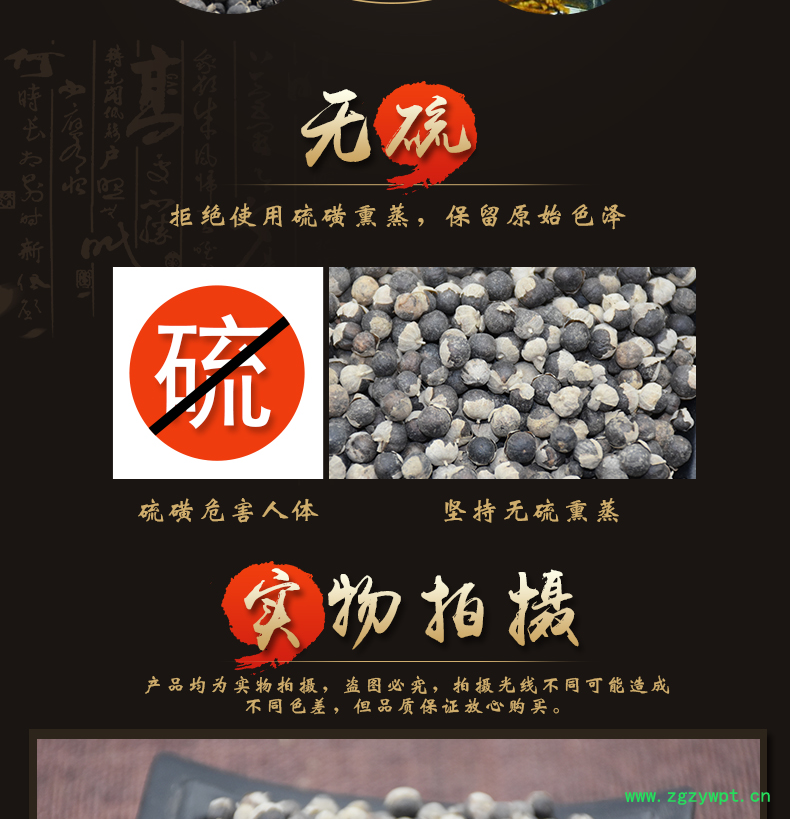 三、中药材实物与描述。中药材是农副产品,不能像手机、汽车等商品有统一健全的标准衡量。在采购交谈中图片可能会与实物有稍微差距,或由于中药材在晾晒过程中不可避免的飞进杂质,我们会尽量人工去杂以避免,但无法做到毫无杂质。如果发的货物中有杂质,请您谅解。