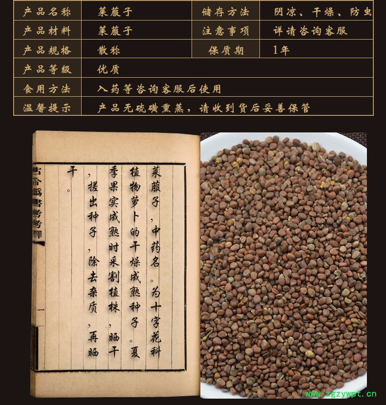 产品: 浏览次数:828华珍品中药材超市 莱菔子 01 莱菔子 小粒 产地 河南省