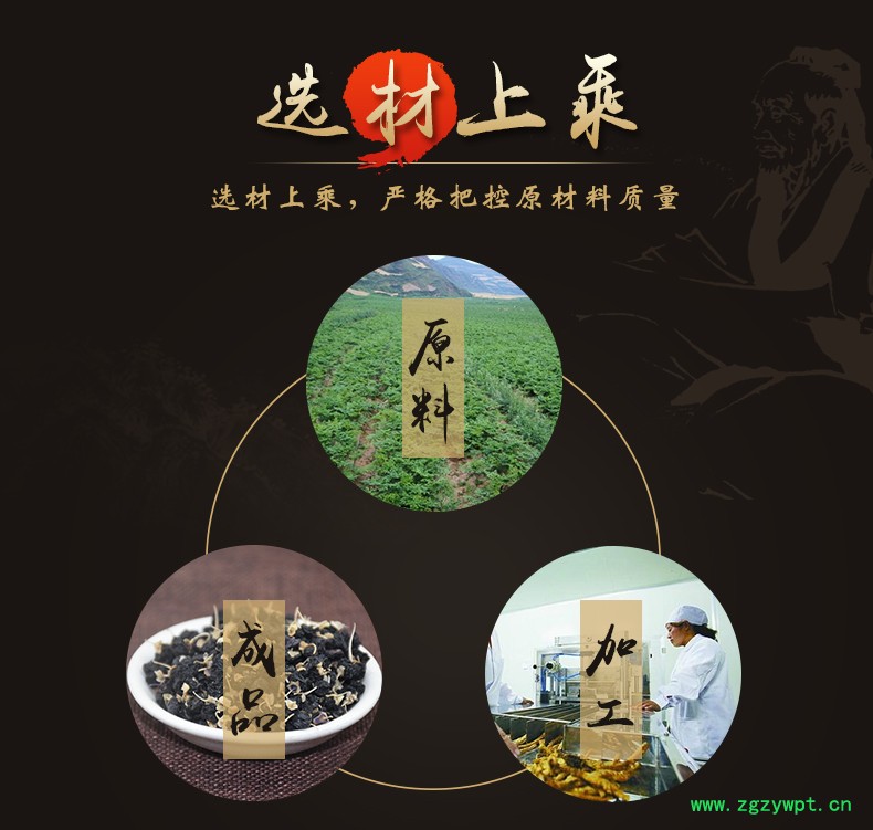 华珍品 本着"地道药材、源于自然、造福人民"的宗旨,严格执行中药材管理规范,以确保中药材质量。