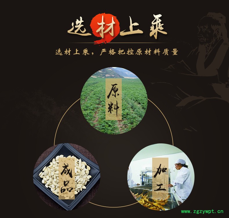 华珍品 本着"地道药材、源于自然、造福人民"的宗旨,严格执行中药材管理规范,以确保中药材质量。