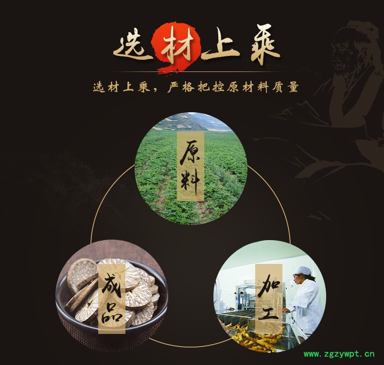 华珍品 本着"地道药材、源于自然、造福人民"的宗旨,严格执行中药材管理规范,以确保中药材质量。
