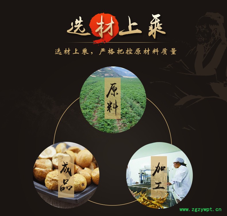 华珍品 本着"地道药材、源于自然、造福人民"的宗旨,严格执行中药材管理规范,以确保中药材质量。