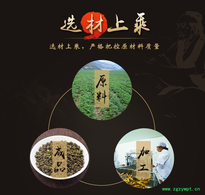 华珍品 本着"地道药材、源于自然、造福人民"的宗旨,严格执行中药材管理规范,以确保中药材质量。