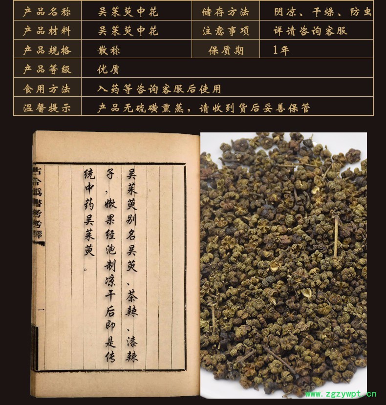 产品: 浏览次数:664华珍品中药材超市 吴茱萸 02 吴茱萸 中花 产地 河北省