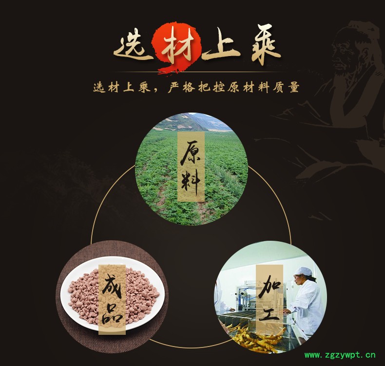 华珍品 本着"地道药材、源于自然、造福人民"的宗旨,严格执行中药材管理规范,以确保中药材质量。