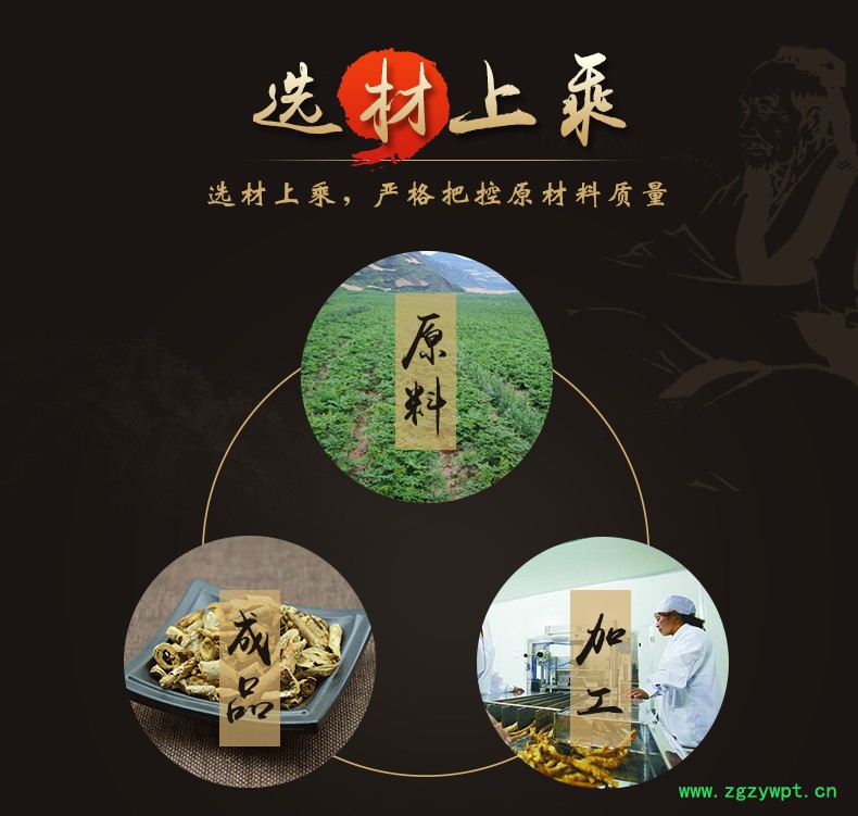 华珍品 本着"地道药材、源于自然、造福人民"的宗旨,严格执行中药材管理规范,以确保中药材质量。