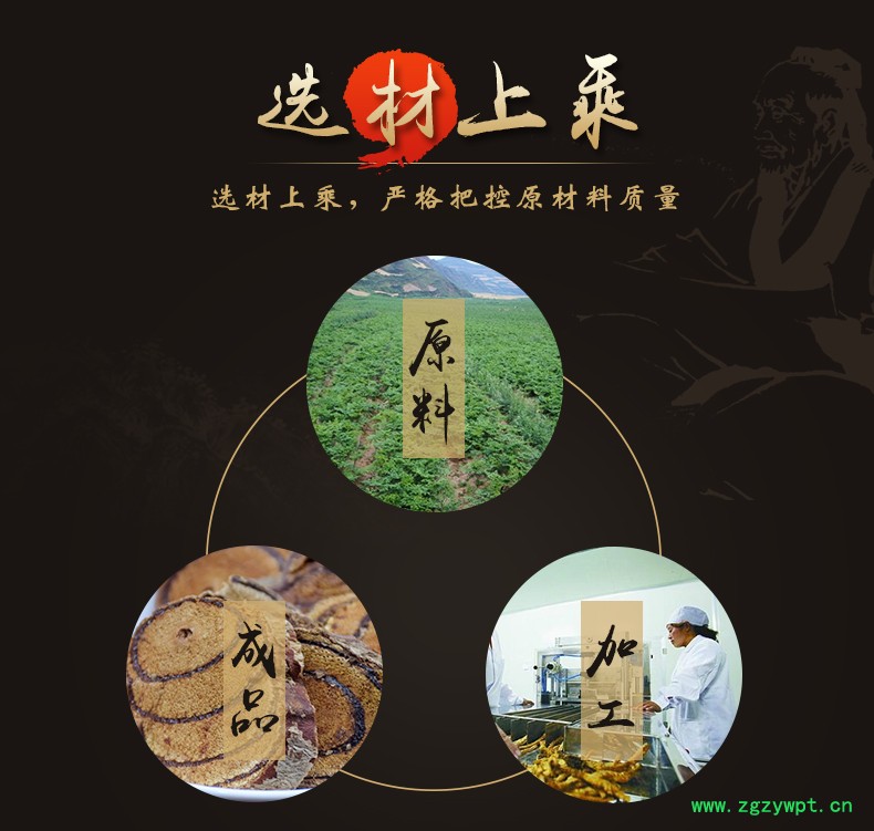 华珍品 本着"地道药材、源于自然、造福人民"的宗旨,严格执行中药材管理规范,以确保中药材质量。